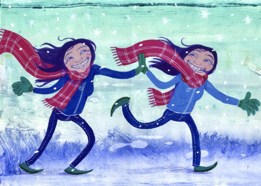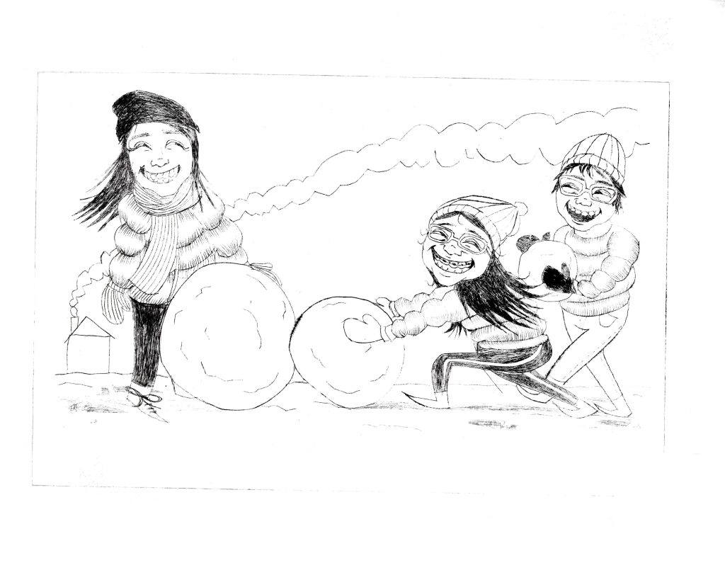 Drawings/Prints "Braids," 22 x 28 in, monotype (ink, wax pastel, pencil) on paper, 2025 "Snow Day," 8 x 11.5 in, monotype (ink, gouache, pencil) on paper, 2025 "Windy," 9 x 12 in, colored pencil on masonite, 2025 "Nerviosa," 9 x 10 in, monotype (ink, wax pastel, pencil) on paper, 2025 "Snowball Fight," 8 x 12 in, monotype (ink) on paper, 2025 "Hermanos," 8 x 12 in, drypoint on paper, 2025 "BFF'S FOREVER," graphite on paper, 2025 "PINE COVE 2015," ink on paper, 2024 "Horseback Ride," pen on paper, 2024 "Cougar Lunch," pen on paper, 2024 "November," pen on paper, 2024 "Skate/Patinar," graphite on paper, 2025 "Vaquera," pencil on paper, 2024 "Farmgirl," graphite on paper, 2025